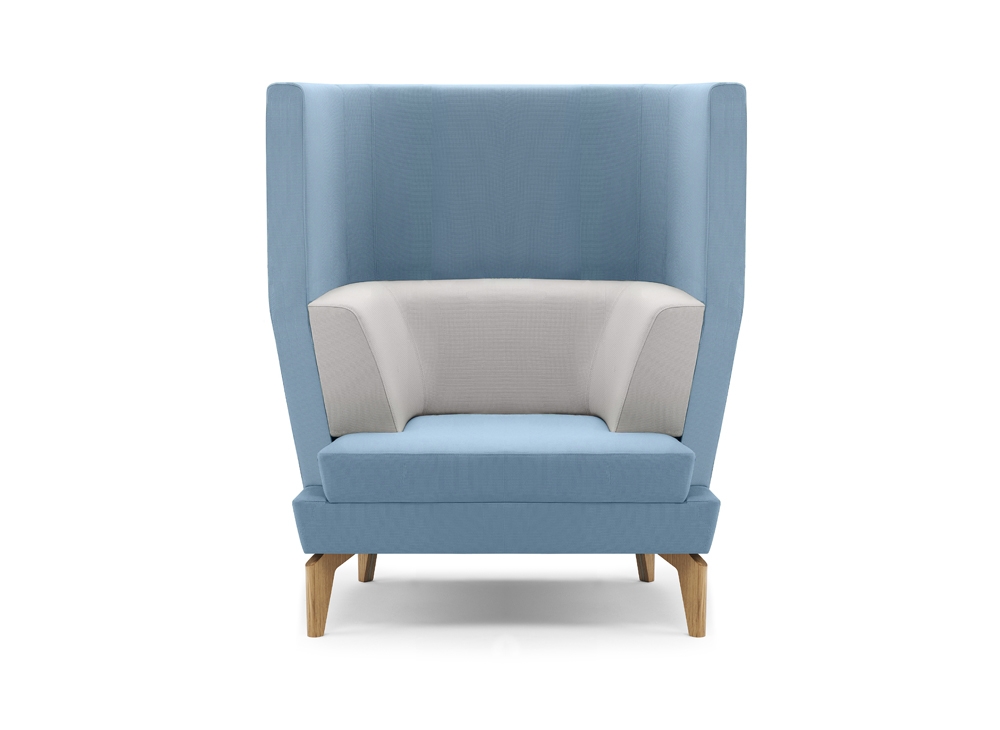 Entente is a new and distinctive collaborative workspace that blends corporate needs with hospitality style. Incorporating power and data and cable management provision, this spectacular high booth and sofa hybrid features two high-back sofas surrounding an oak laminate table with an interconnecting panel.